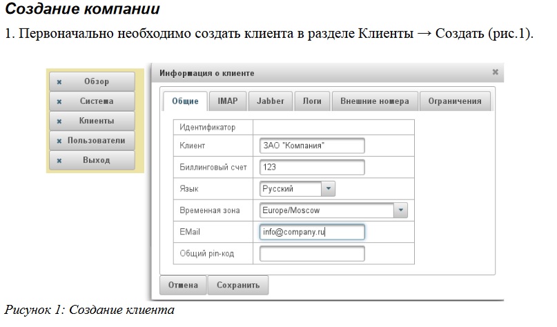 Создание клиента в виртуальной АТС