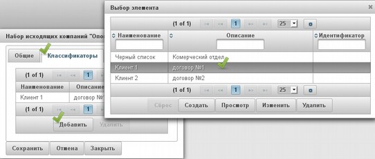 Рисунок 22: Телемаркетинг. Добавление Классификаторов.