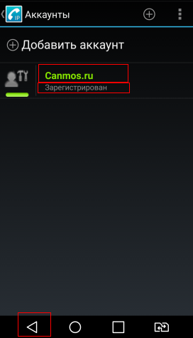 Если мы проделали все шаги, как написано в инструкции выше, верно - то надпись Canmos.ru поменяет свой цвет с красного на зелёный. А статус под надписью Canmos.ru - «Ошибка при регистрации» сменится на статус «Зарегистрирован». Смотрим ниже